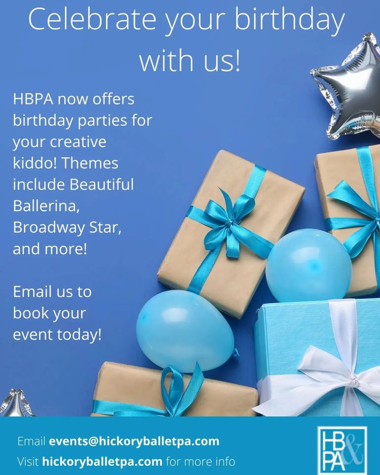 Hickory Ballet and Performing Arts is proud to bring the magic of ballet and performance to life for your child’s special day! Check out the Packages for the most adorable, ballet-themed party. Please email events@hickoryballetpa.com for more details and to reserve your party today!