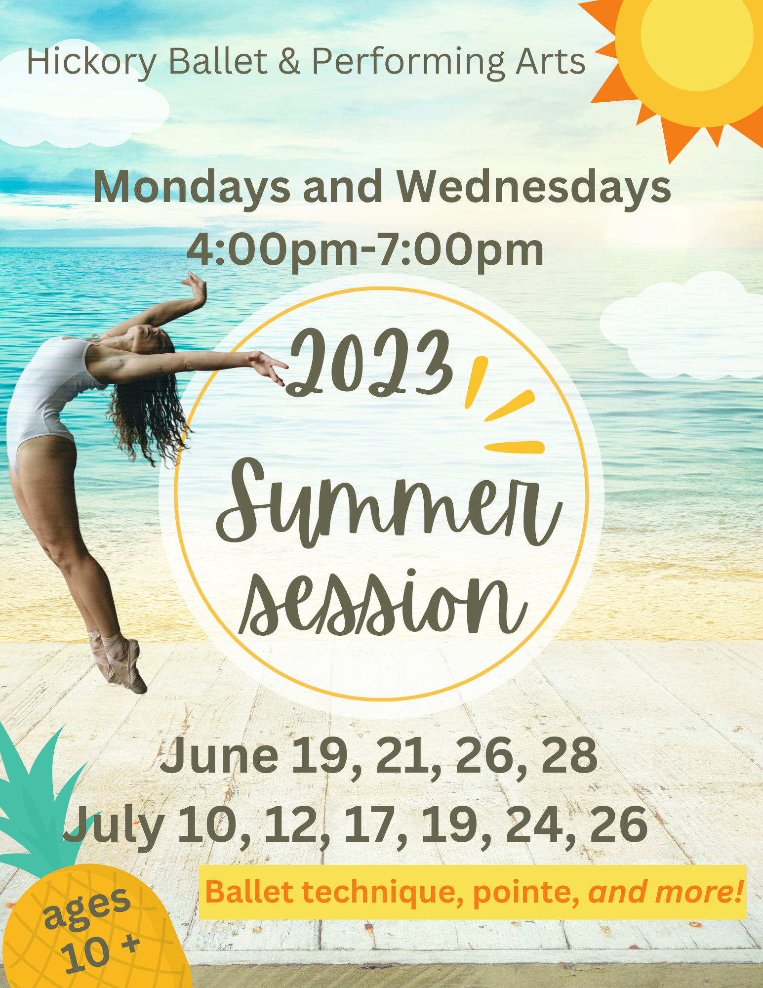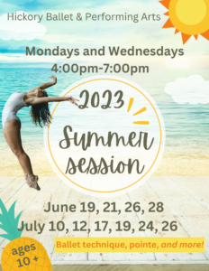 Keep your ballet skills sharp this summer with 10 days of technique, pointe/pre-pointe, and additional classes like jazz, PBT, yoga, etc.